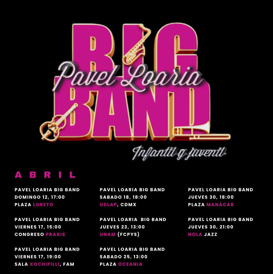 Pavel Loaria, saxofonista y director reconocido por tocar en el Carnegie Hall de Nueva York. Ha dado clases en Berklee College of Music de Boston MA. Nominado al Grammy latino, primer mexicano en estudiar en Jazz at Lincoln Center’s Band Director Academy y formar la primera Big Band Infantil y Juvenil de México.